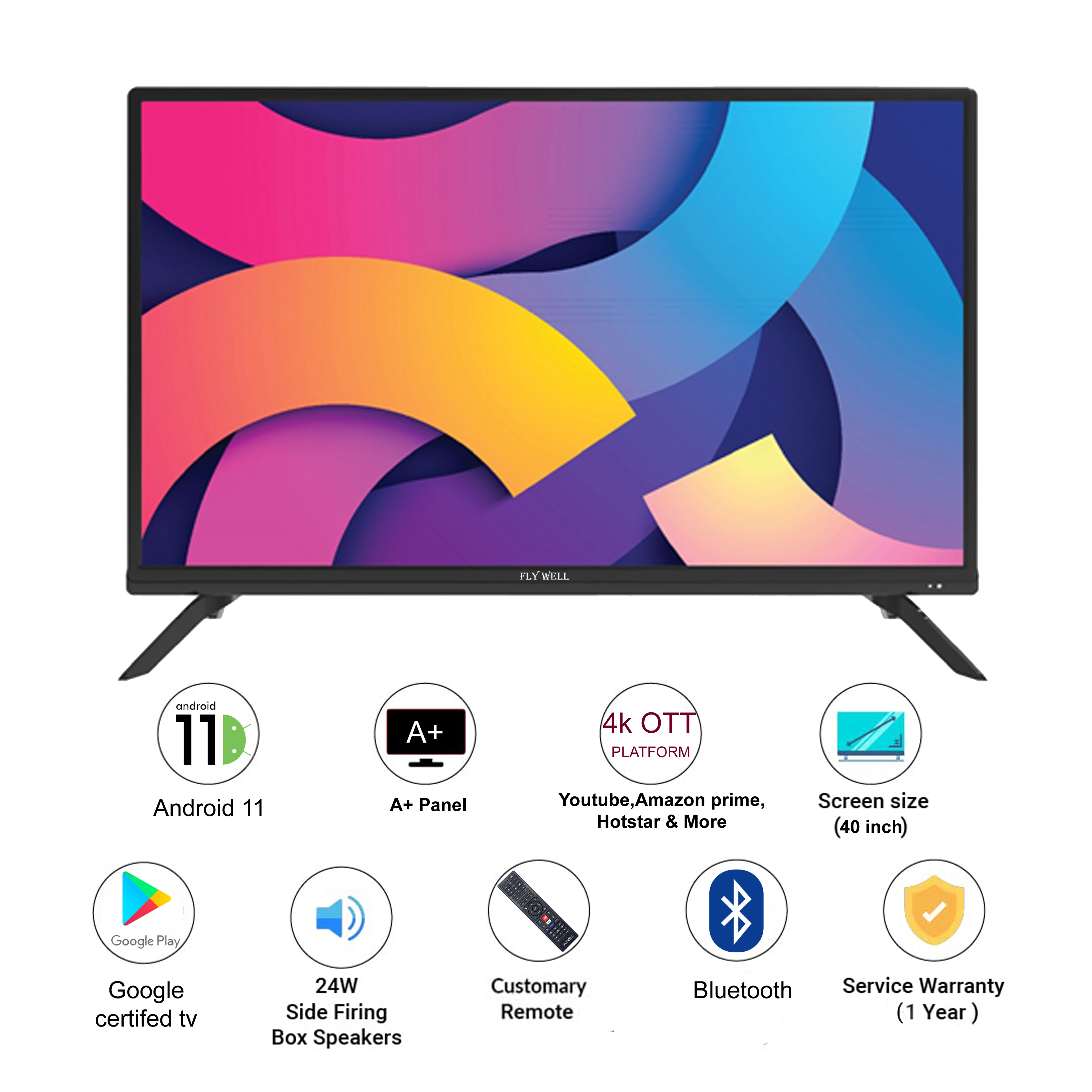 40 Android Tv (4KUHD, Bluetooth, Google play store, Android 11, YouTube, Netflix, Amazon prime, Hotstar & more OTT apps )
